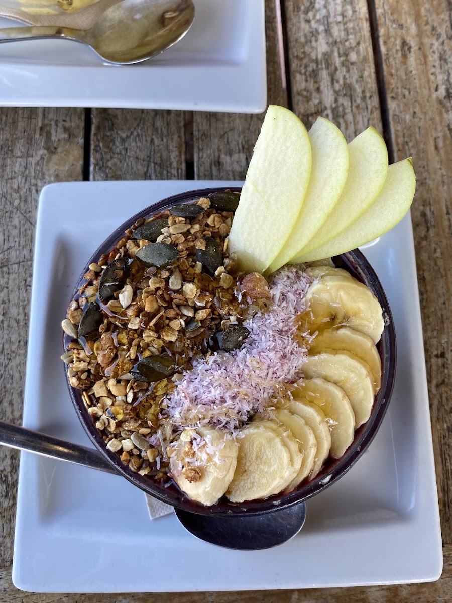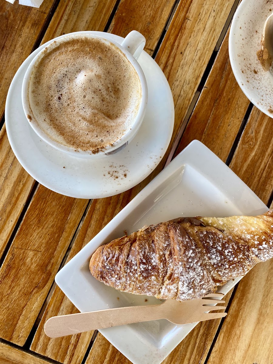 Fun place to have snacks, cake, or coffee! The Nutella croissant is good, their regular croissant fantastic, crispy, flaky, buttery!! Many healthy (and less healthy) options and relaxes, friendly surf vibes.
